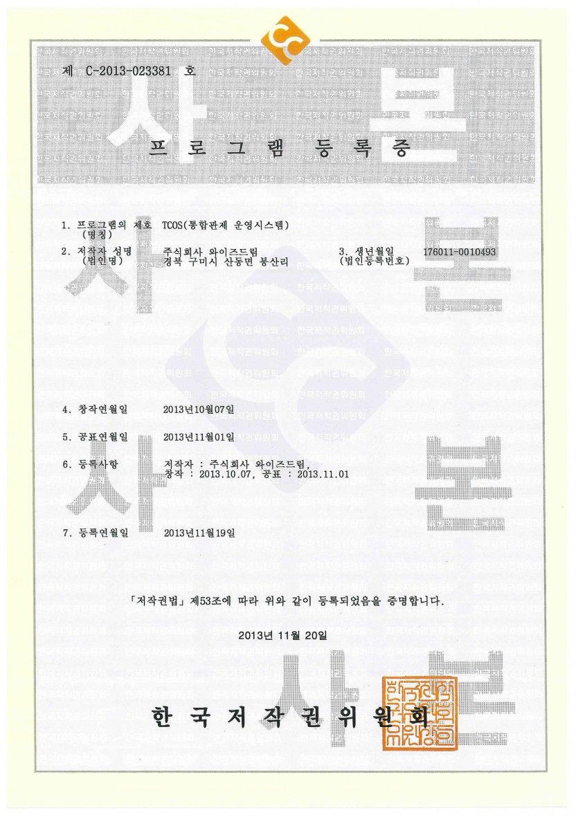 [프로그램등록증] 통합관제 운영시스템 (TCOS) 페이지 정보 와이즈드림 작성일20-12-07 14:57 조회20,081회 관련링크 본문 통합관제 운영시스템 (TCOS) 이전글 다음글 목록
